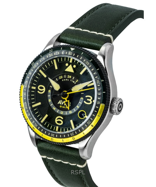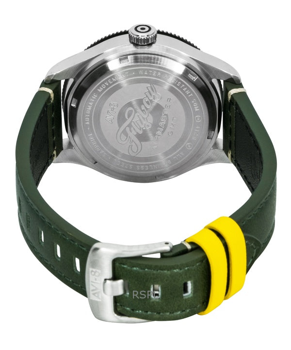 AVI-8 Flyboy Airmaster GMT -runko, vihreä nahkaranneke, vihreä kellotaulu, automaattinen, AV-4128-03, miesten kello