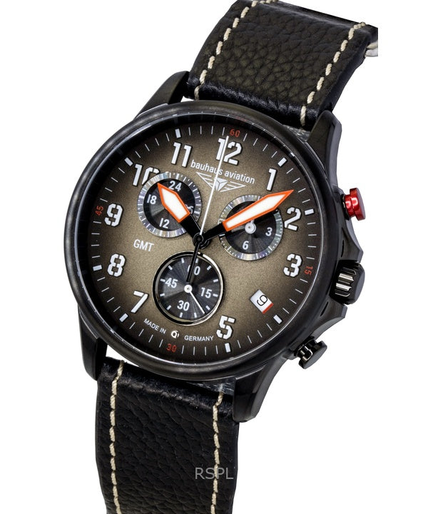 Bauhaus Aviation Chronograph -nahkahihnalla varustettu ruskealla kellotaululla varustettu kvartsi 28861 100M miesten kello