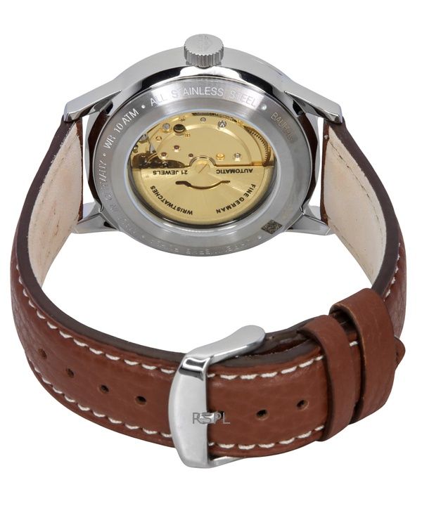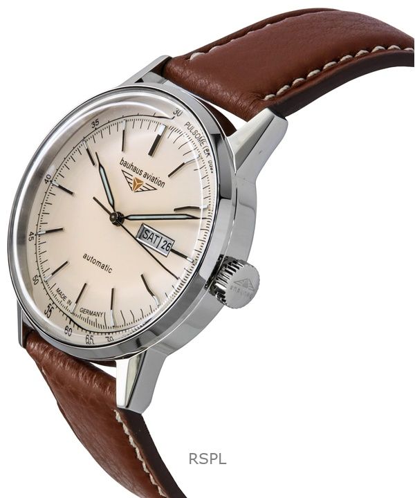 Bauhaus Aviation nahkaranneke beige kellotaulu automaattinen 23665 100M miesten kello