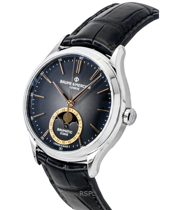 Baume & Mercier Clifton nahkaranneke, kuunvaihe, musta kellotaulu, automaattinen M0A10758 miesten kello