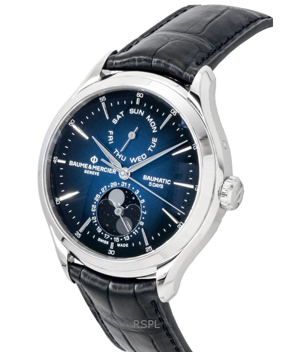 Baume & Mercier Clifton nahkaranneke, kuunvaiheen sininen kellotaulu, automaattinen M0A10593 miesten kello