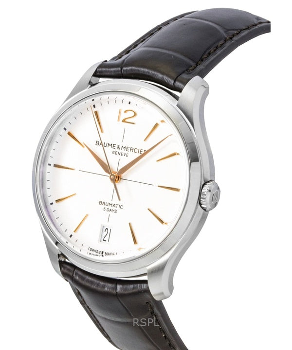 Baume & Mercier Clifton nahkaranneke luonnonvalkoinen kellotaulu automaattinen M0A10773 miesten kello