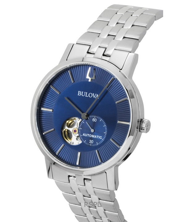 Bulova American Clipper ruostumattomasta teräksestä valmistettu avosydän sininen kellotaulu automaattinen 96A247 miesten kello