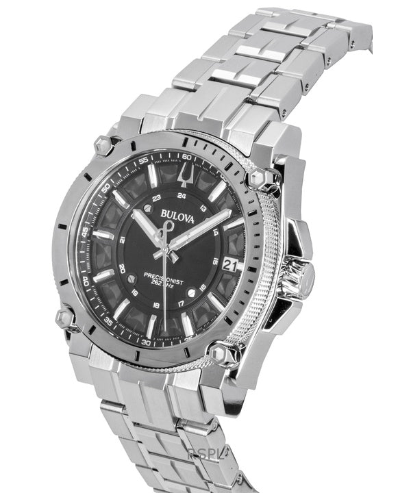 Bulova Icon Precisionist ruostumattomasta teräksestä valmistettu musta kellotaulu kvartsi 96B417 100M miesten kello