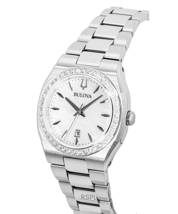 Bulova Surveyor Diamond ruostumattomasta teräksestä valmistettu helmiäiskvartsi 96R245 naisten kello