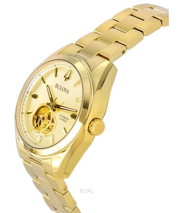 Bulova Surveyor kultasävyinen ruostumaton teräs, avoin sydän, samppanjakello, automaattinen 97A182 miesten kello
