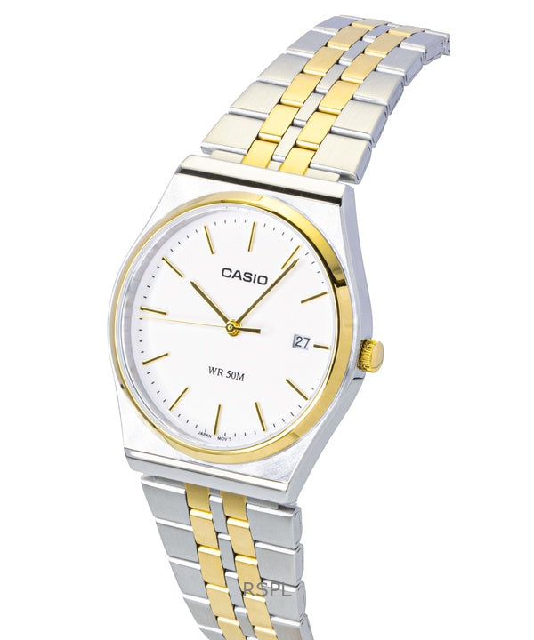 Casio analoginen kaksisävyinen ruostumattomasta teräksestä valmistettu valkoinen kellotaulu kvartsi MTP-B145SG-7AV miesten kello