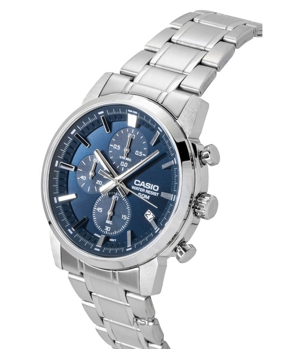 Casio analoginen kronografi ruostumattomasta teräksestä valmistettu sininen kellotaulu kvartsi MTP-E510D-2A2V miesten kello