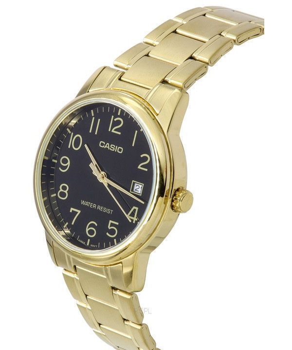 Casio Analoginen kultasävyinen ruostumaton teräs, musta kellotaulu kvartsi MTP-V002G-1B miesten kello