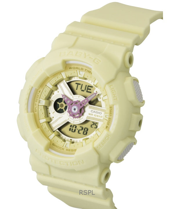 Casio Baby-G analoginen digitaalinen hartsiranneke, keltainen kellotaulu, kvartsi, BA-110AH-9A, 100M naisten kello