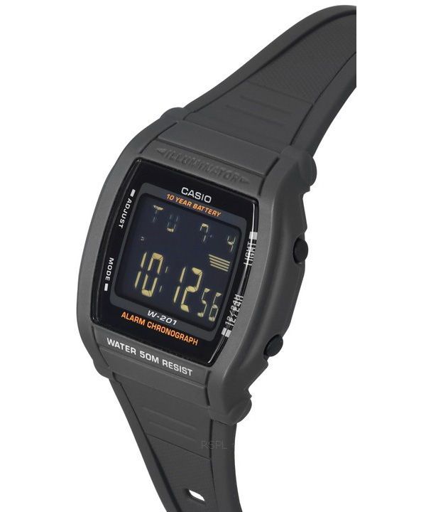 Casio digitaalinen urheiluhartsihihna, musta kellotaulu kvartsi W-201-1B miesten kello