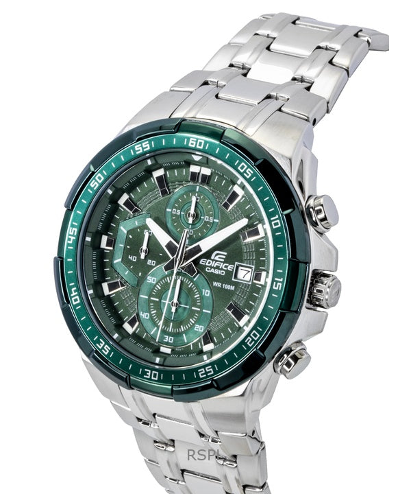 Casio Edifice analoginen standardi kronografi ruostumattomasta teräksestä valmistettu vihreä kellotaulu kvartsi EFR-539DE-3AV 100M miesten kello