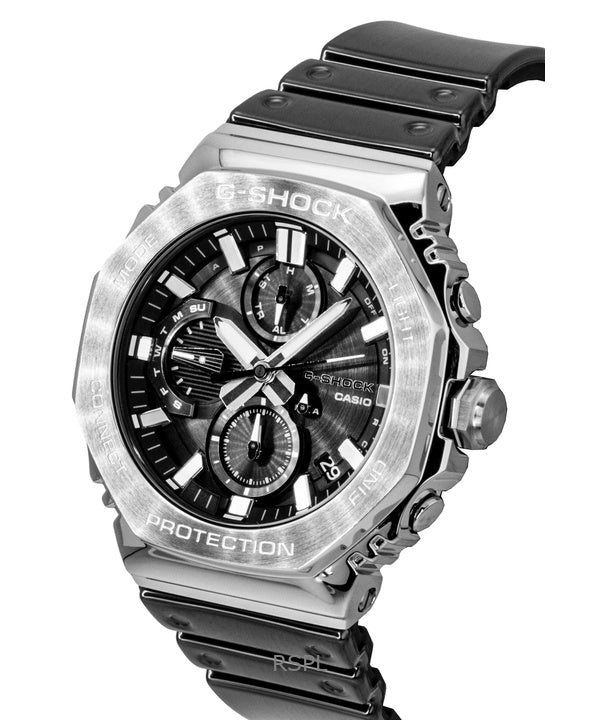 Casio G-Shock täysmetallinen älypuhelinlinkki silikonirannekkeella, analoginen musta kellotaulu, aurinkokennolla toimiva GMC-B2100Y-1A 200M miesten kello