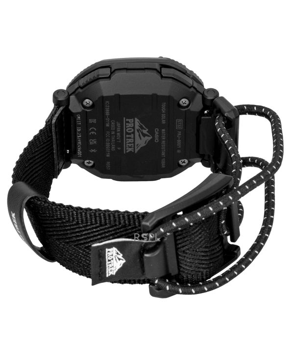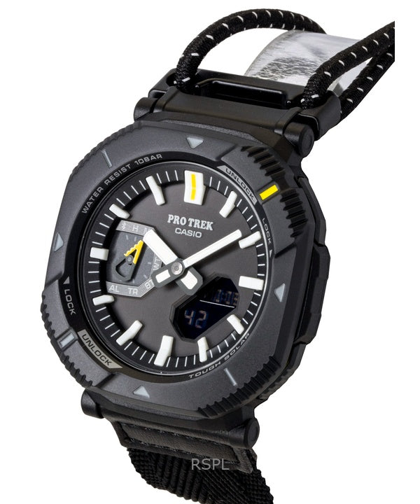 Casio Pro Trek analoginen digitaalinen älypuhelinlinkki kangasrannekkeella, musta kellotaulu, aurinkokello PRJ-B001B-1 100M miesten kello