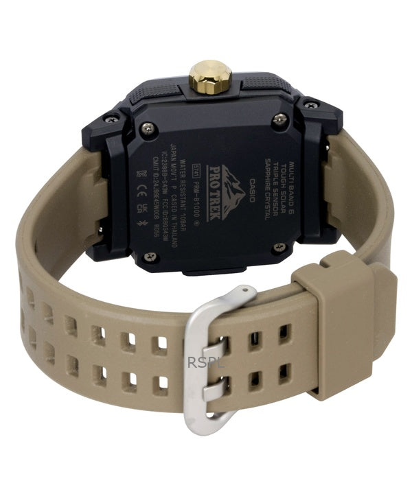 Casio Pro Trek analoginen digitaalinen älypuhelinlinkki ruskea kumiranneke musta kellotaulu aurinkokennolla PRW-B1000-5 100M miesten kello