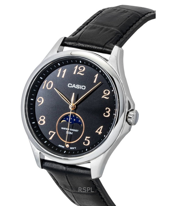 Casio Standard Analog Moon Phase -nahkahihnan musta kellotaulu Quartz MTP-M110L-1AV miesten kello