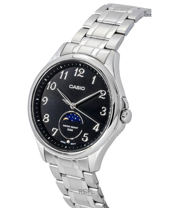 Casio Standard Analog Moon Phase ruostumattomasta teräksestä valmistettu musta kellotaulu kvartsi MTP-M110D-1AV miesten kello