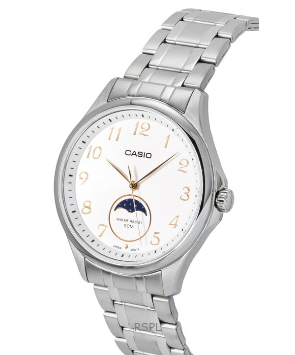 Casio Standard Analog Moon Phase ruostumattomasta teräksestä valmistettu valkoinen kellotaulu kvartsi MTP-M110D-7AV miesten kello