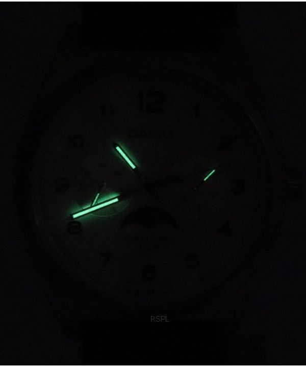 Casio Standard Analog Moon Phase valkoinen kellotaulu nahkaranneke kvartsi MTP-M300L-7A MTPM300L-7 miesten kello