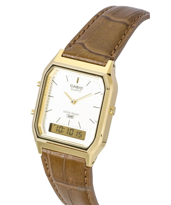 Casio Vintage analoginen digitaalinen nahkaranneke kultaisella kellotaululla kvartsi AQ-230EGL-9A unisex-kello