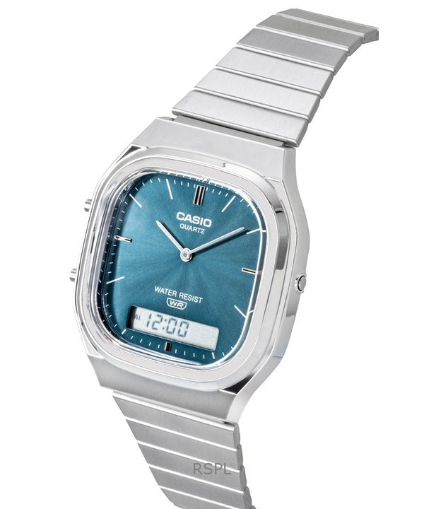 Casio Vintage analoginen digitaalinen ruostumattomasta teräksestä valmistettu taivaansininen kellotaulu AQ-240E-3A unisex-kvartsikello