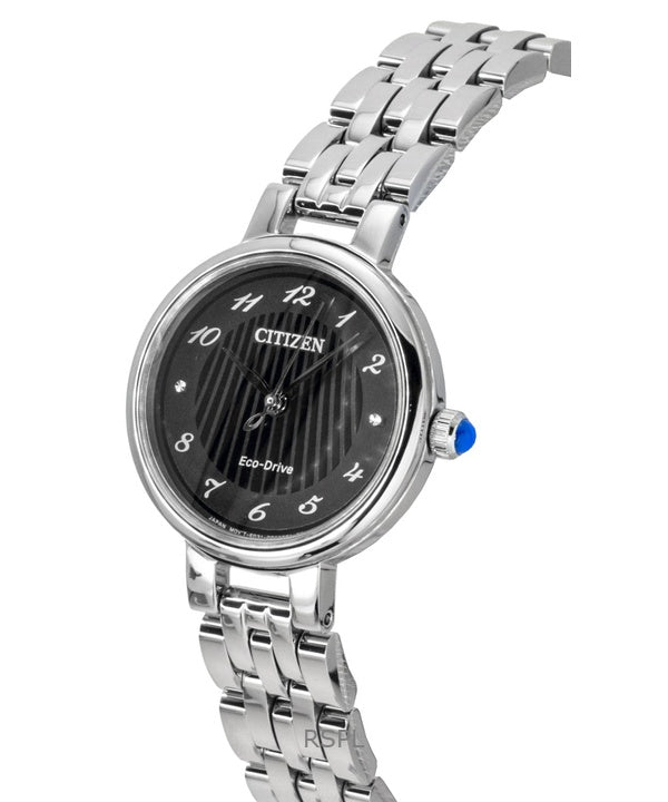 Citizen L Classic -ruostumattomasta teräksestä valmistettu musta kellotaulu Eco-Drive EM0990-81E naisten kello