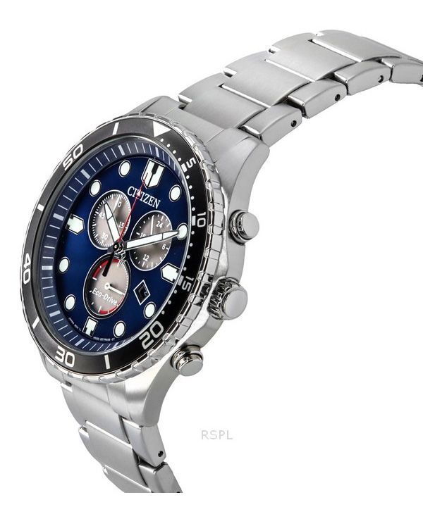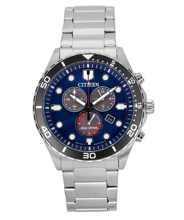 Citizen Sporty-Aqua Chronograph ruostumaton teräs sininen kellotaulu Eco-Drive AT2560-84L 100M miesten kello