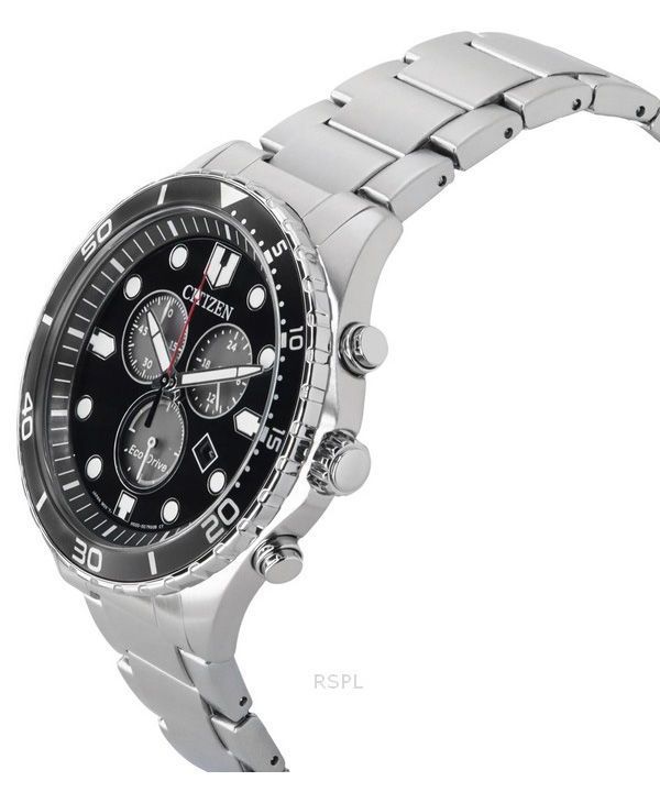 Citizen Sporty-Aqua Chronograph ruostumattomasta teräksestä valmistettu musta kellotaulu Eco-Drive AT2568-82E 100M miesten kello