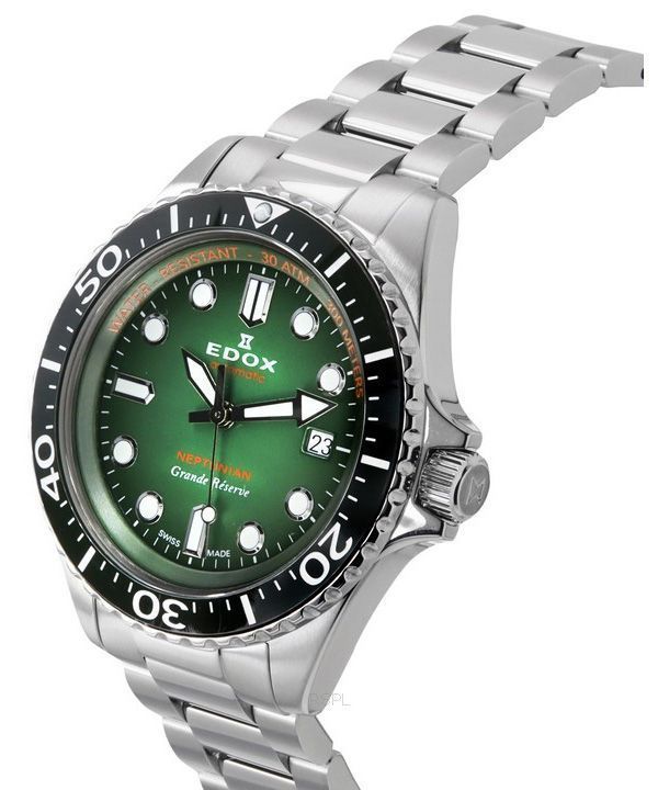 Edox Neptunian Grande Reserve Date Green Dial automaattinen sukeltaja 80801 3VM VDN 300M miesten kello