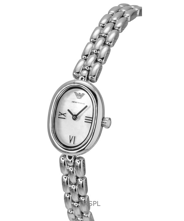 Emporio Armani ruostumattomasta teräksestä valmistettu helmiäiskuvioinen kvartsi AR11720 naisten kello