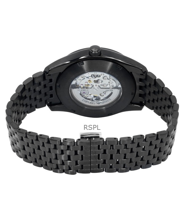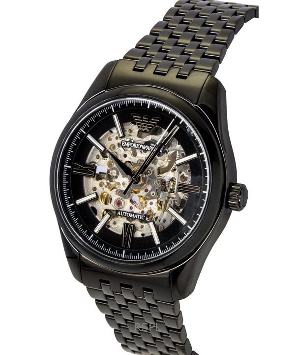 Emporio Armani ruostumattomasta teräksestä valmistettu musta luurankokellotaulu, automaattinen AR60093 miesten kello