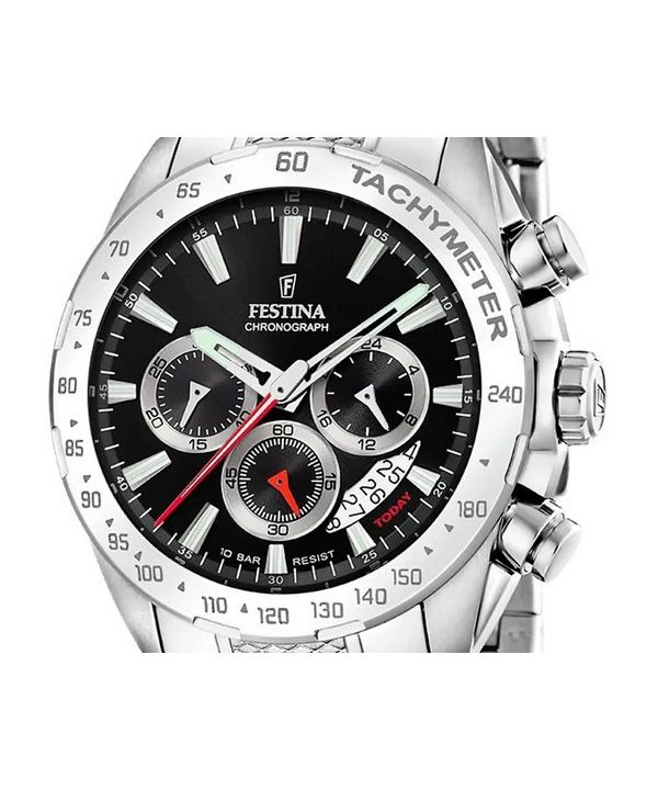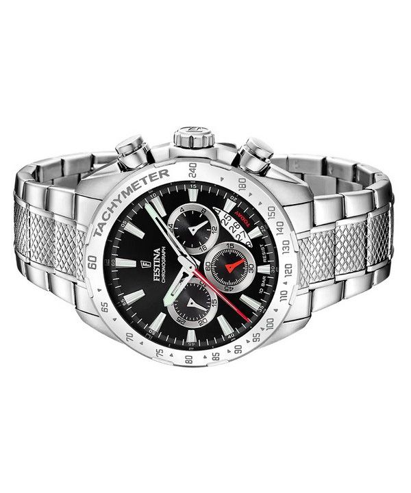 Festina Chrono Sport ruostumattomasta teräksestä valmistettu musta kellotaulu kvartsi F20668-4 100M miesten kello