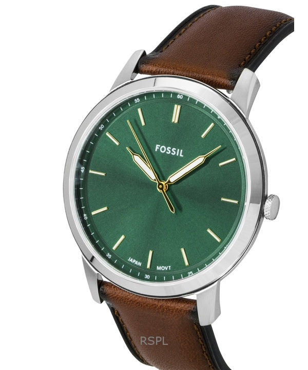 Fossil Minimalist FS6094 -kvartsikello, nahkaranneke, vihreä kellotaulu, miesten kello
