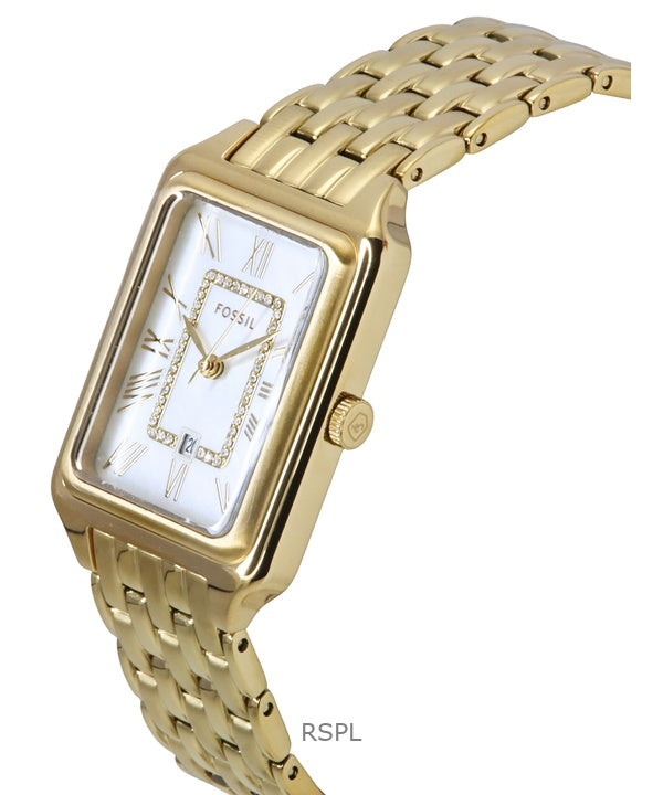 Fossil Raquel kultasävyinen ruostumaton teräs, valkoinen helmikellokvartsi ES5304 naisten kello