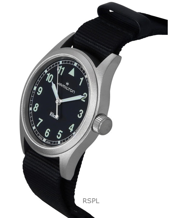 Hamilton Khaki Field -tekstiiliranneke, musta kellotaulu, kvartsi, H69401430, unisex-kello