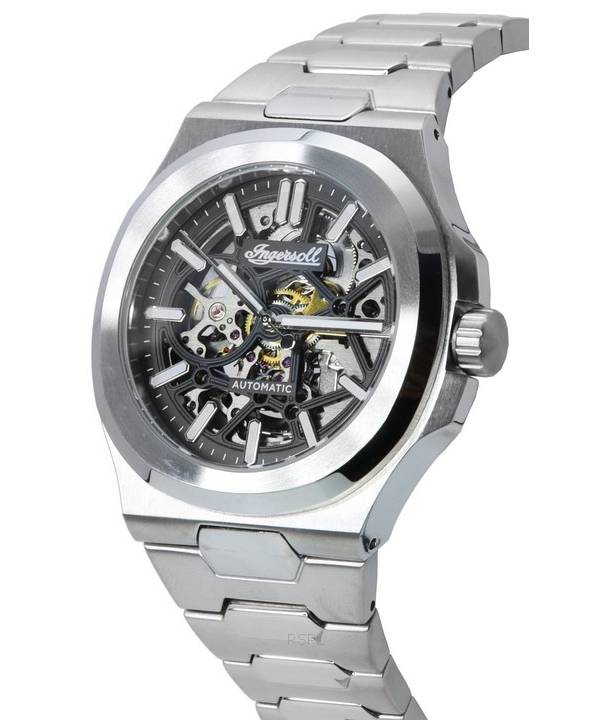 Ingersoll Catalina ruostumattomasta teräksestä valmistettu luuranko musta kellotaulu automaattinen I12501 miesten kello
