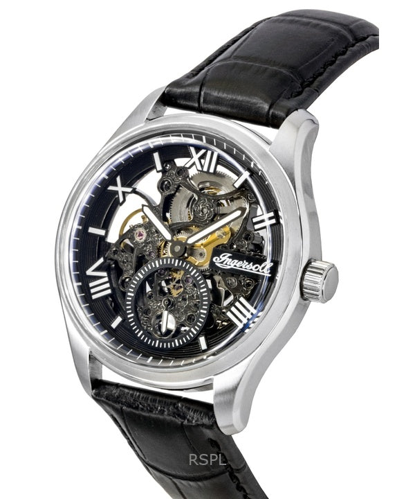 Ingersoll Maverick -nahkahihnalla, mustalla luurankokellotaululla, automaattinen I17401 miesten kello
