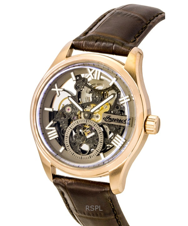 Ingersoll Maverick nahkaranneke harmaa luurankokellotaulu automaattinen I17402 miesten kello