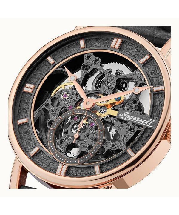 Ingersoll The Herald nahkaranneke musta luuranko kellotaulu I00403B miesten kello