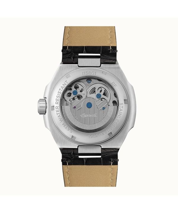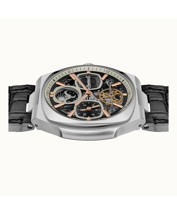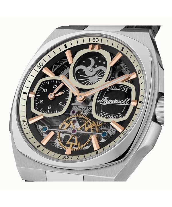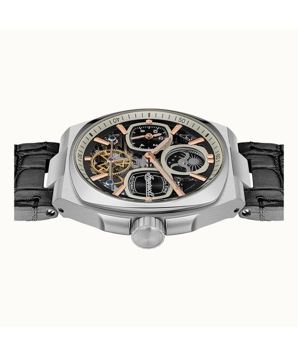 Ingersoll The Spirit Moon Phase nahkaranneke musta luuranko kellotaulu I15801 miesten kello