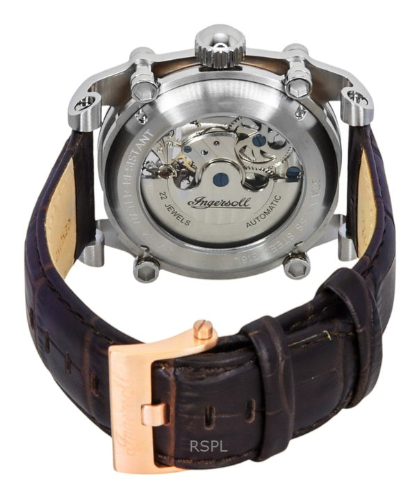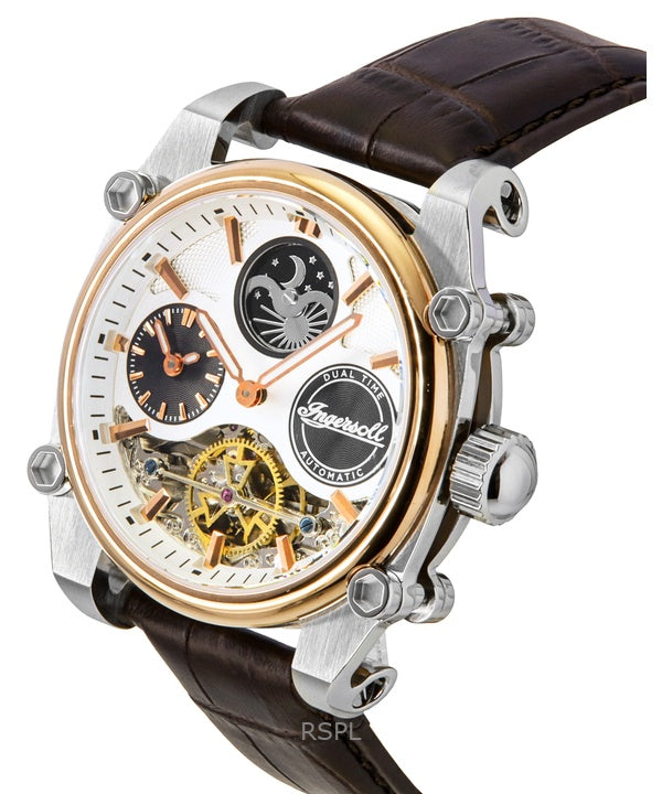 Ingersoll The Varsity -nahkahihna, hopeinen luurankokellotaulu, automaattinen I15401 miesten kello