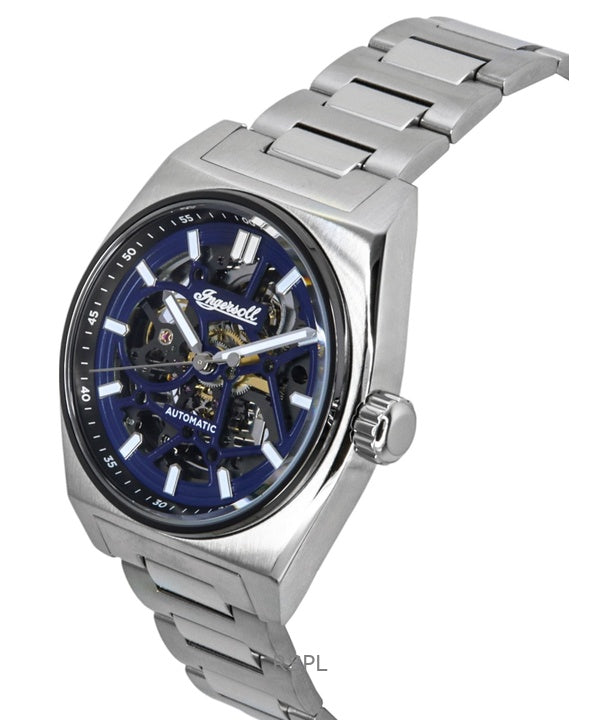 Ingersoll Vert ruostumattomasta teräksestä valmistettu sininen luurankokellotaulu, automaattinen I14305 miesten kello