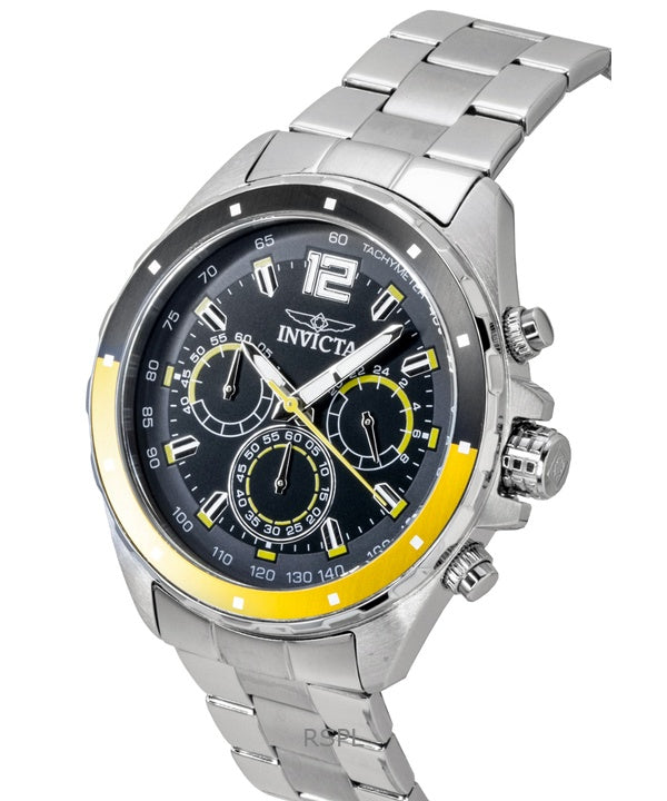 Invicta Speedway Chronograph GMT ruostumattomasta teräksestä valmistettu musta kellotaulu kvartsi 49365 miesten kello