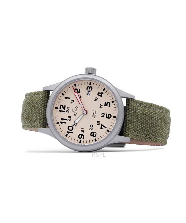 Kunnostettu Ratio Quest miesten kenttäkello safiiri kangasrannekkeella, kvartsi RTQ019 100M Lewis & Clark -versio
