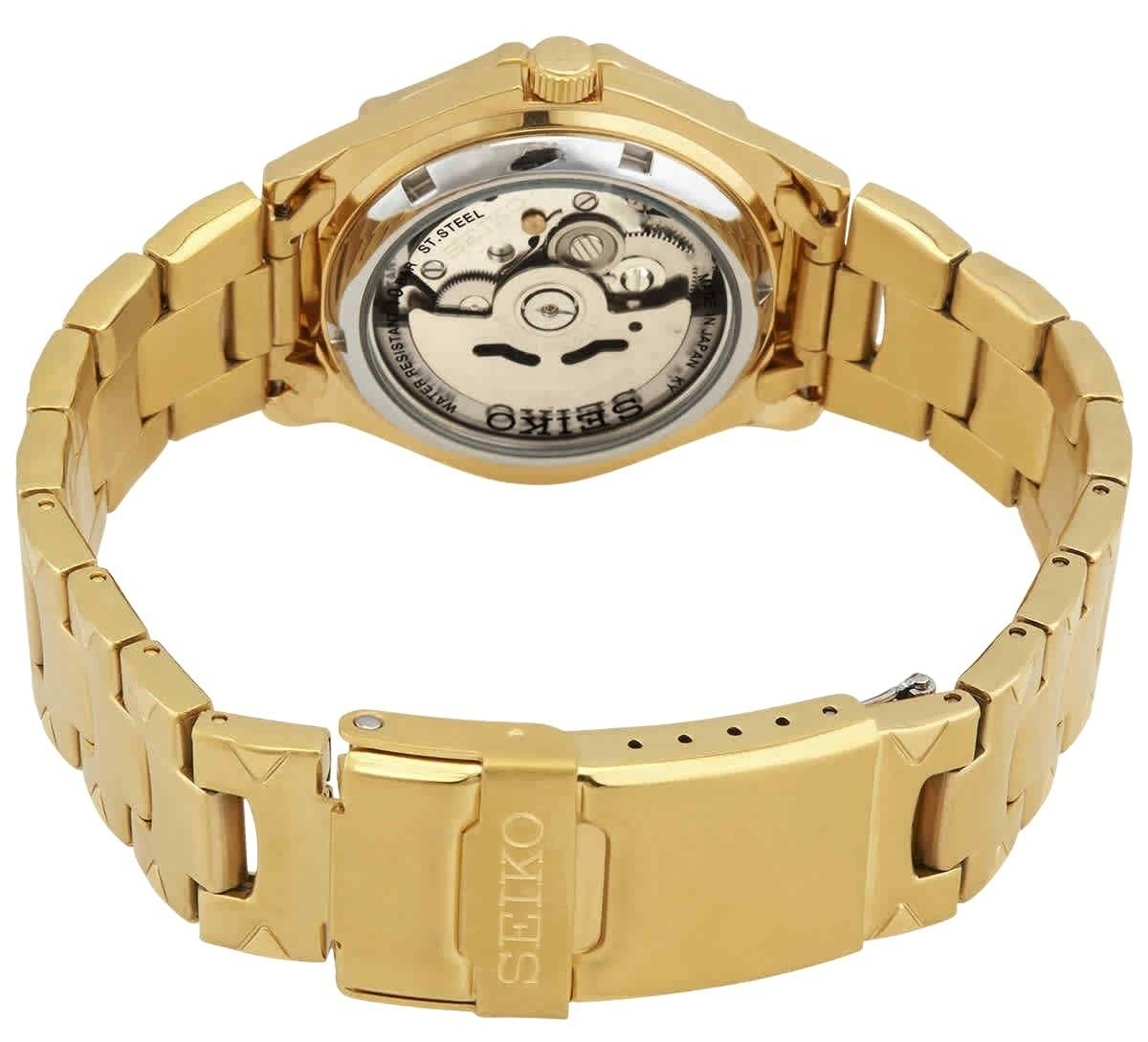 Kunnostettu Seiko 5 Sports -kullanvärinen ruostumattomasta teräksestä valmistettu kultainen kellotaulu, automaattinen SNZ450J1 100M miesten kello