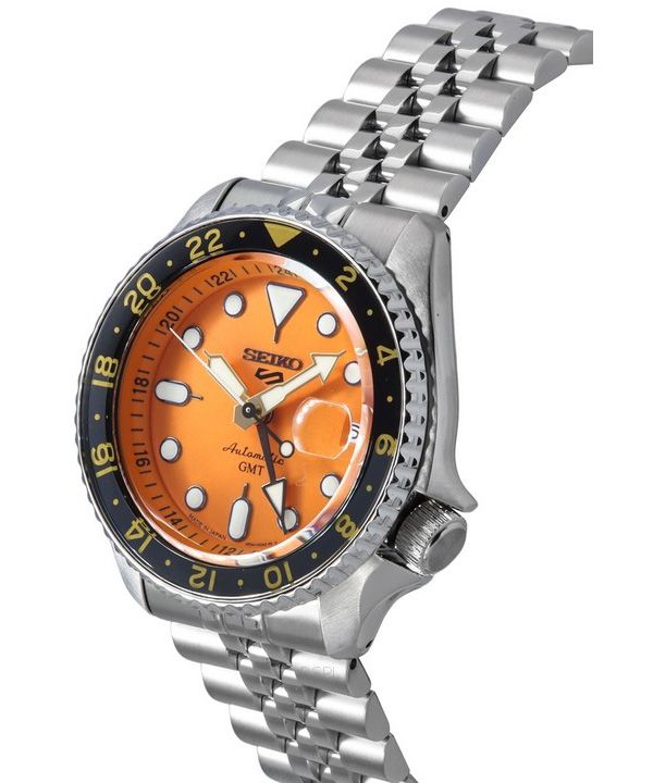 Kunnostettu Seiko 5 Sports SKX Sports Style GMT ruostumattomasta teräksestä valmistettu oranssi kellotaulu 24 jalokiveä automaattinen SSK005J1 100M miesten kello