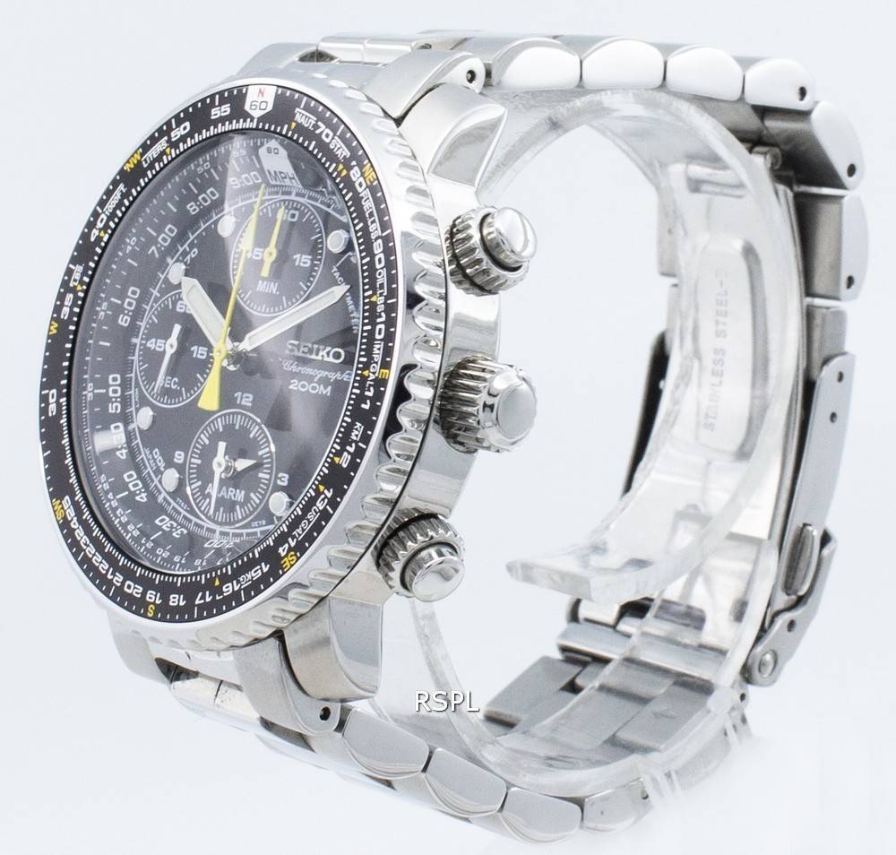 Kunnostettu Seiko Chronograph SNA411 SNA411P1 SNA411P Pilotin hälytys 200M miesten kello