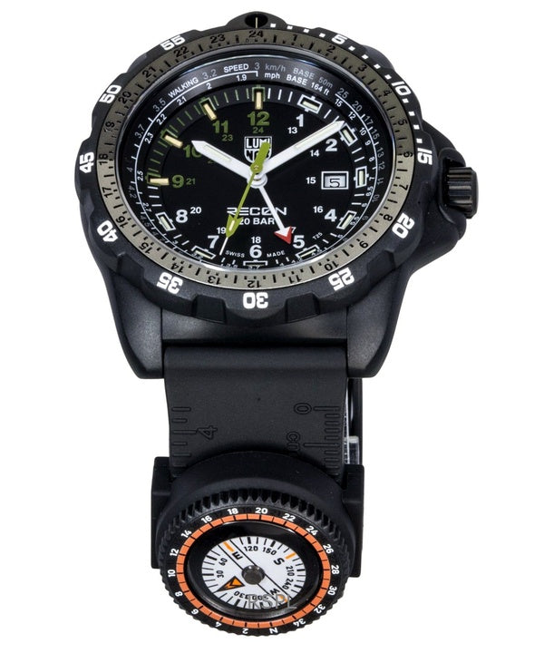 Luminox Recon Nav Spec GMT -kumiranneke, musta kellotaulu, kvartsi, sukeltajan XL.8837.SET 200M miesten kello