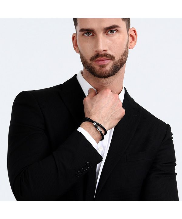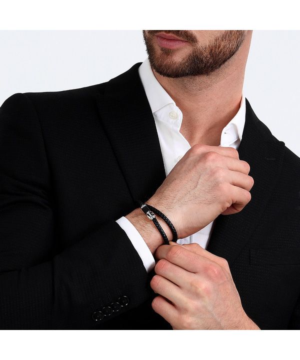 Maserati Jewels kierrätetystä nahasta ja ruostumattomasta teräksestä valmistettu rannekoru JM223AVE18 miehille
