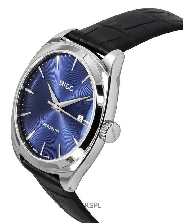 Mido Belluna Royal Gent musta nahkaranneke sininen kellotaulu automaattinen M024.507.16.041.00 miesten kello